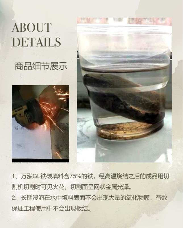 萬(wàn)泓微電解填料由鐵、碳、GL催化劑、貴金屬催化劑、活化劑等充分混合,采用天然氣高溫?zé)Y(jié)技術(shù)燒結(jié)而成。GL鐵碳填料用于各種高濃度有機(jī)廢水的預(yù)處理,能有效去除廢水的COD、色度、重金屬,提高可生化性能,工程運(yùn)行效果持續(xù)穩(wěn)定,終身不板結(jié)!