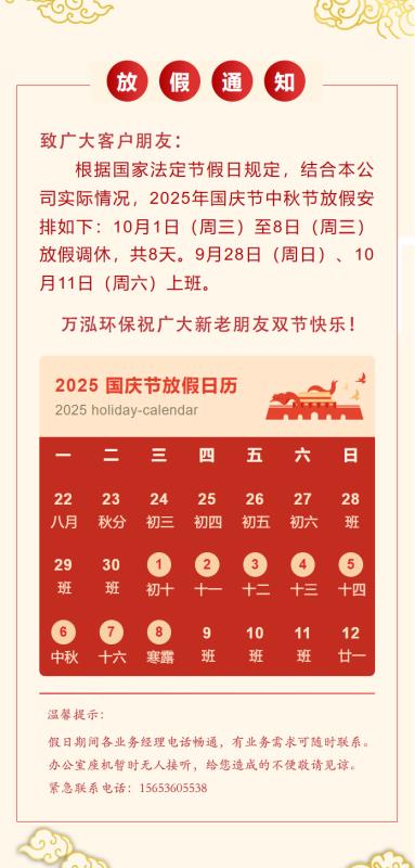 筑夢燈火萬家,同慶盛世中華。明月如詩,與國同慶。山東萬泓環保祝大家2025國慶中秋雙節快樂!